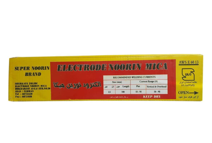 الکترود ۲.۵ میکا ساخت یکی از شرکتهای تولیدی سیم جوش در ایران به نام شرکت الکترود نورین میکا می.باشد این شرکت انواع الکترود جوشکاری تولید می.کند یکی از جمله پرمصرف ترین این الکترودها، سیم جوش میکا E۶۰۱۳ است که بیشتر برای جوشکاری اسکلت ساختمان استفاده میشود این الکترود قطر ۲٫۵ کوچکترین اندازه الکترود است که عمدتا با آمپر ۶۰ تا ۹۰ جوشکاری می.شود همچنین برای جوش لوله گاز و آب فشار) (پایین و جوشکاری آهنهای ۲ و ۳ میلی متری مورد استفاده قرار میگیرد.