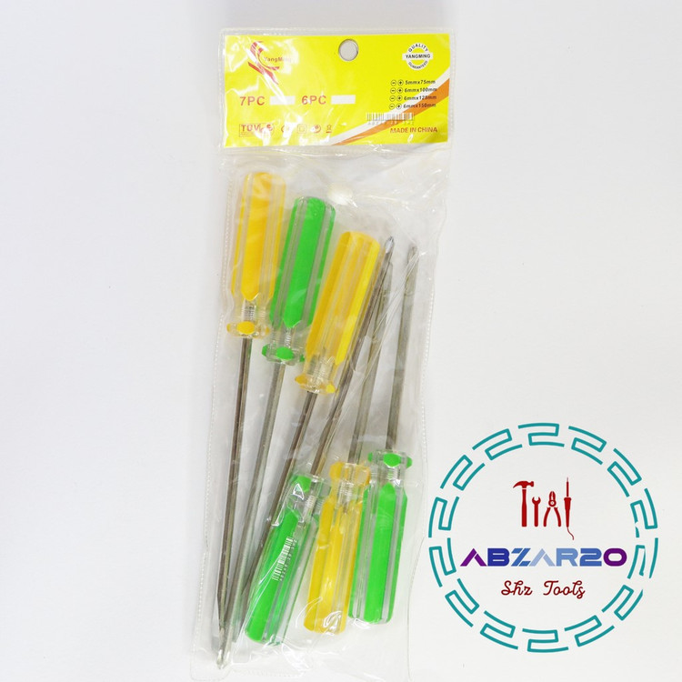 مجموعه پیچ گوشتی 6 عددی برند YANGMING ساخته شده از ، فولاد کروم وانادیوم (Cr-V) با روکش کروم جهت افزایش مقاومت در برابر فشار و خوردگی
